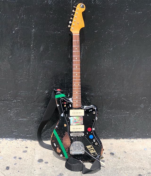 彼が “Godzilla” と呼ぶ Fender American Vintage ‘62 Jazzmaster は、印象的な黒いピックガードによって黒一色となった上にラフなステッカーボムやペイント、そして Mastery Bridge への換装が施された形になっていて、現在 Jazzmaster という楽器のイメージとして広く共有されるような種の音楽性に留まらない雑多な雰囲気を出してる気がする。